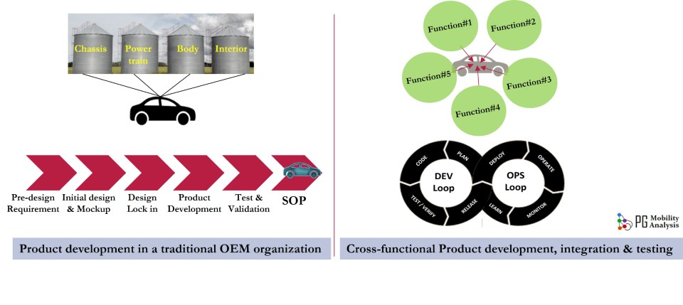 Deep organisational change is essential for legacy OEMs to transition to a software-defined vehicle (SDV) architecture and move beyond the traditional product development model. Historically, OEMs operated in siloed structures where the company is organised around vehicle sub-systems such as body, chassis, and interior. In turn, product development is focused primarily on integrating these sub-systems, the electronics hardware and controls usually come as a black box, and embedded software remains unchanged throughout product lifecycle. That’s changing, and companies need to adapt if they hope to remain competitive.